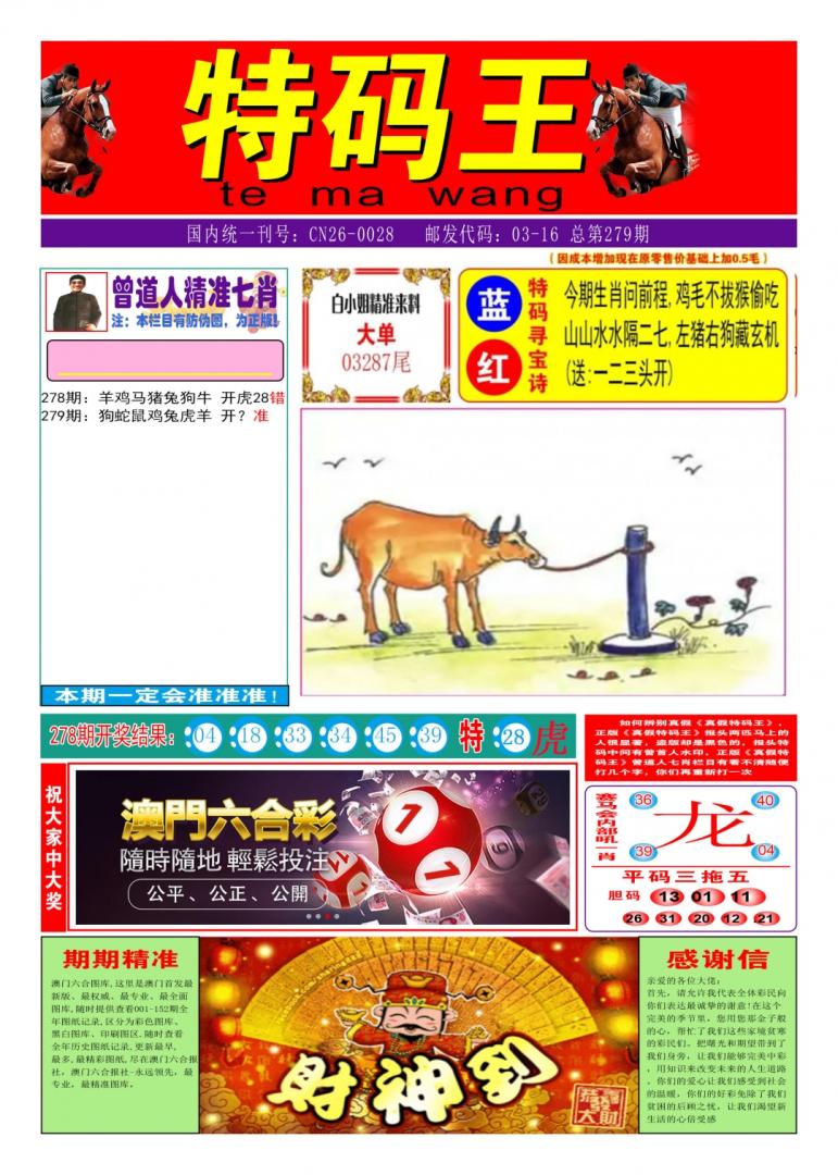 279期:时来运转【三码中特】无情战神 |